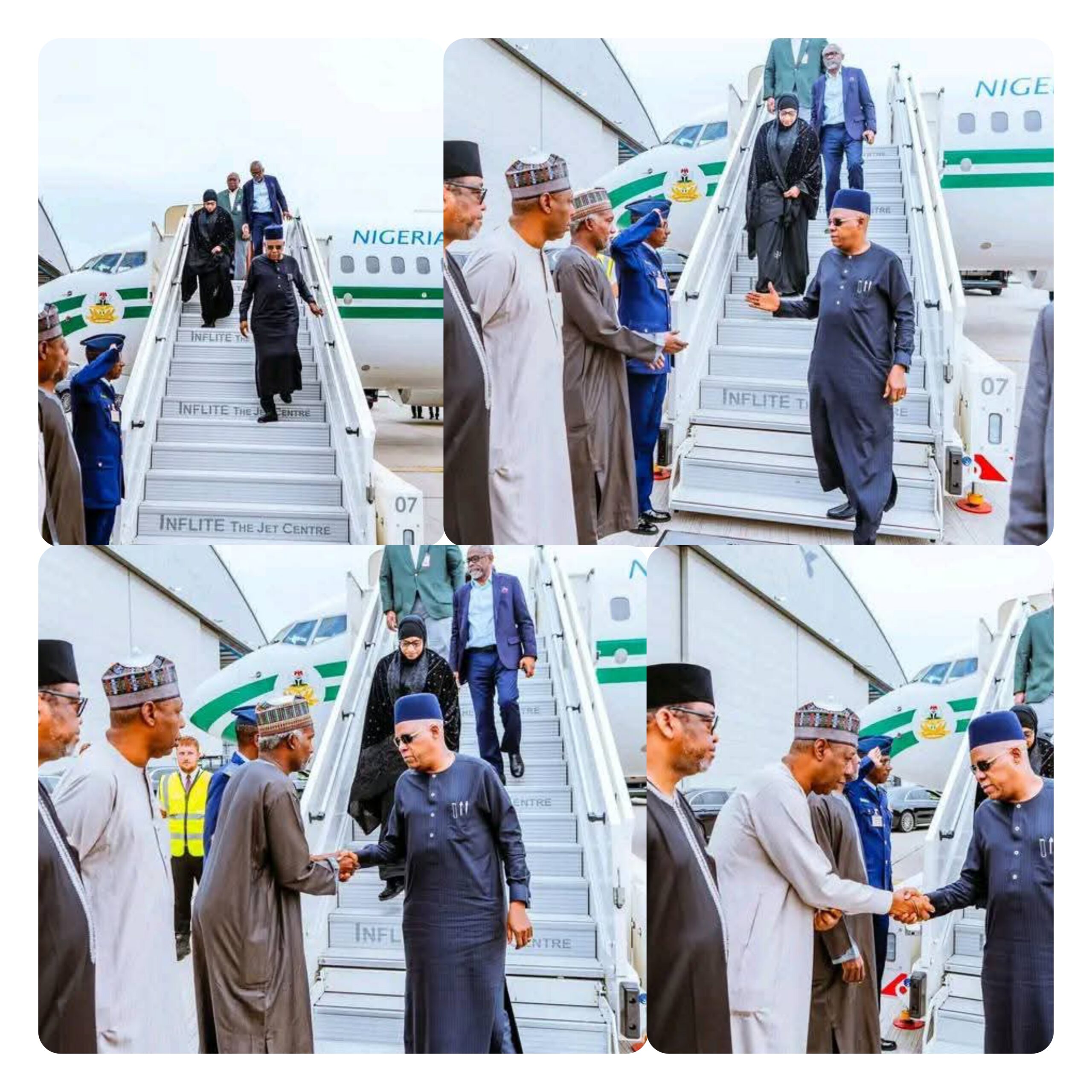 Acting on the directive of President Bola Ahmed Tinubu, Vice President Shettima touched down in the United Kingdom in the company of the Chief of Staff to the President, Hon. Femi Gbajabiamila. The Nigerian delegation was warmly received at the airport by Nigeria’s Minister of Foreign Affairs, Ambassador Yusuf Tuggar, and the Governor of Borno State, Professor Babagana Umara Zulum.