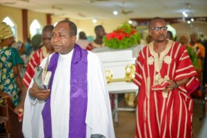 The service featured hymns, prayers and tributes, with church officials including the Archbishop of Ibadan Province, The Most Rev. Williams Oluwarotimi Aladekugbe, represented among the clergy.