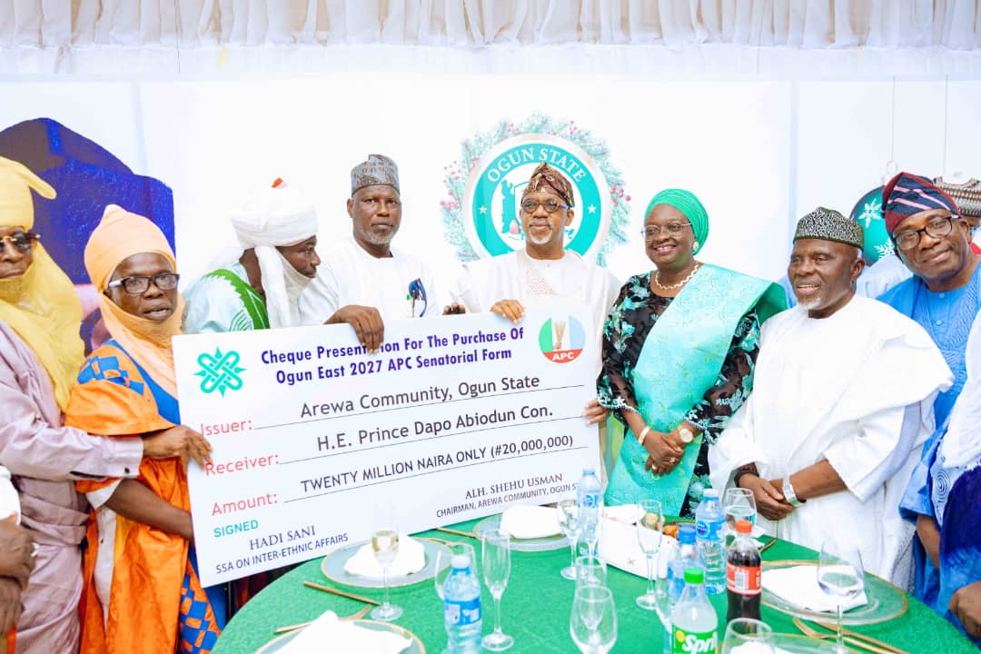 IPERU-REMO, Ogun State — The Arewa Community in Ogun State on Friday demonstrated its growing political engagement in the South-West as it donated the sum of ₦20 million to Governor Dapo Abiodun in support of his Ogun East APC Senatorial ambition ahead of the 2027 general elections.