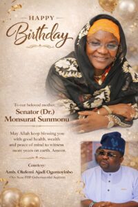 Oyo State governorship aspirant, under the platform of the Peoples Democratic Party, PDP, Ambassador Olufemi Ajadi Oguntoyinbo, has congratulated former Speaker of the Oyo State House of Assembly and ex-Senator representing Oyo Central Senatorial District, Senator Monsurat Olajumoke Sunmonu, on the occasion of her 67th birthday, describing her as a symbol of visionary leadership and women’s political advancement in Nigeria.